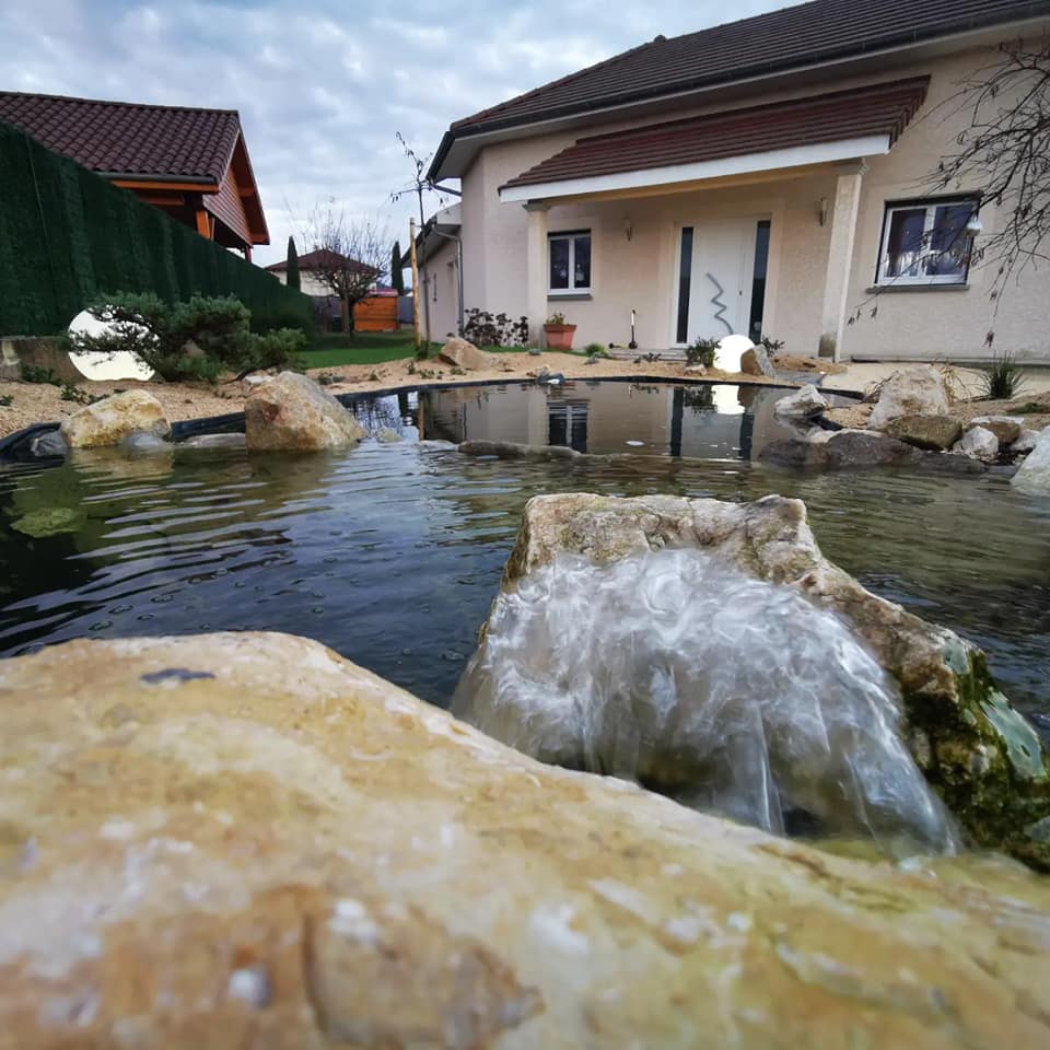 Bassin d’agrément Réalisation d’un bassin d’agrément Implantation et Terrassement Pose de l’EPDM Installation de la pompe et la filtrations Plantation Installation de l’éclairage Création d’une allée Paillage chanvre